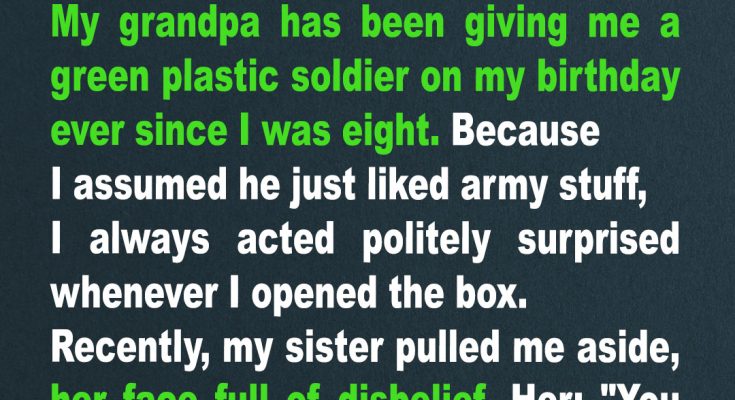 My grandfather gave me a single green plastic soldier every year on my birthday, never with a card or explanation. It wasn’t until after he passed that I discovered those tiny toys were part of a mystery for nearly two decades, just for me!