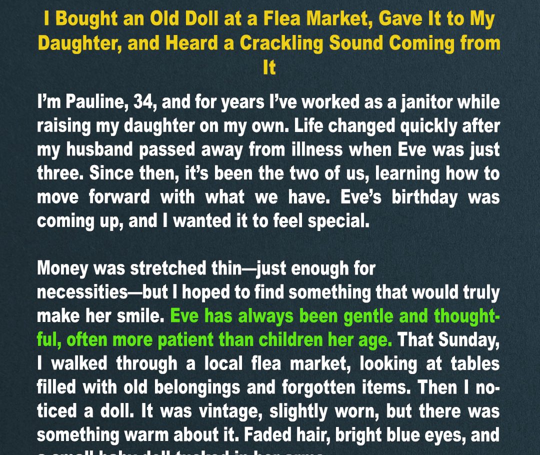 The doll had a recording. And that voice… that small, sweet voice, was someone’s daughter. I thought of the woman at the flea market…