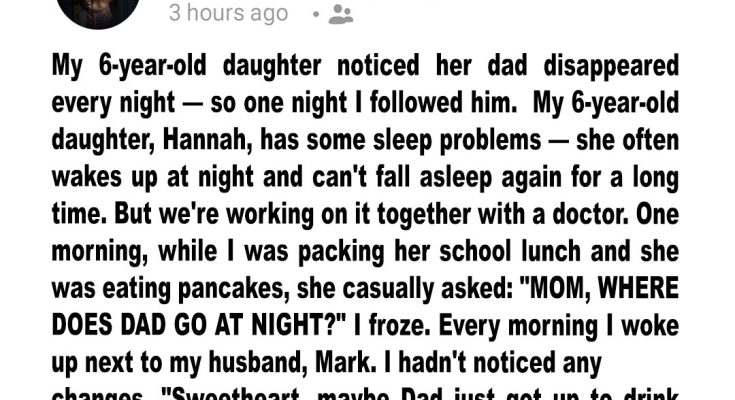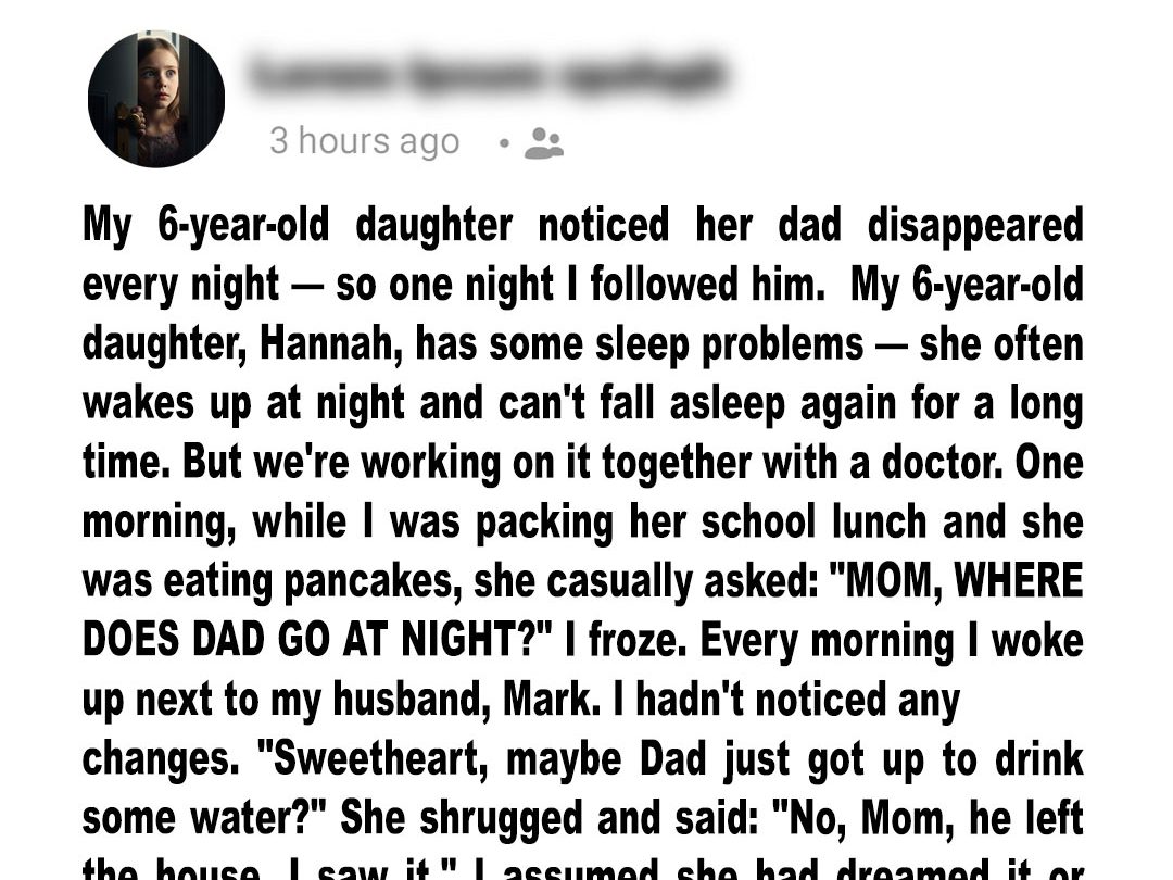 When my daughter’s late-night insomnia turned into a chilling question about where her dad sneaks off to every night, I brushed it off. But one quiet morning, her innocent curiosity cracked open a secret I thought I’d buried forever.