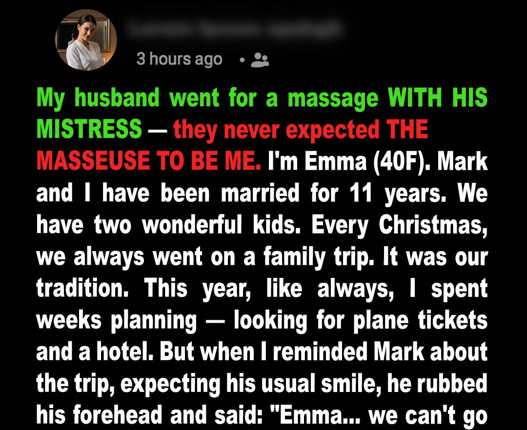 My husband came in for a couple’s massage with his mistress. He never expected the masseuse to be me.