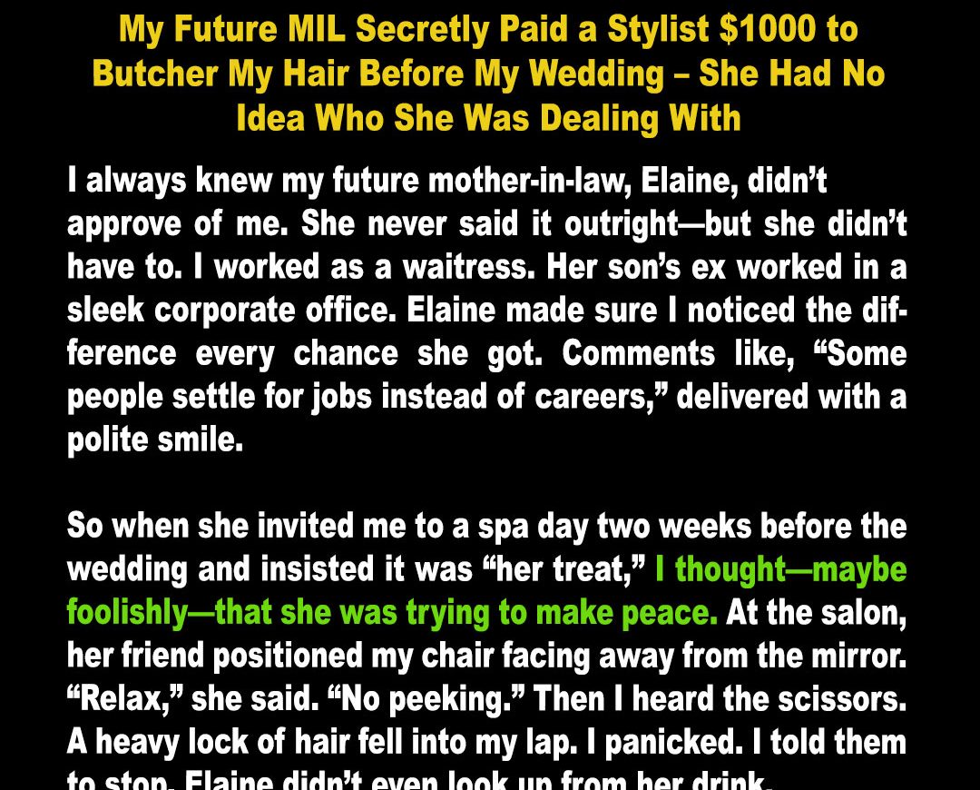 I’m the bride whose future MIL paid her friend a thousand dollars to secretly butcher my hair two weeks before my wedding. She needed to learn a lesson about respecting others.