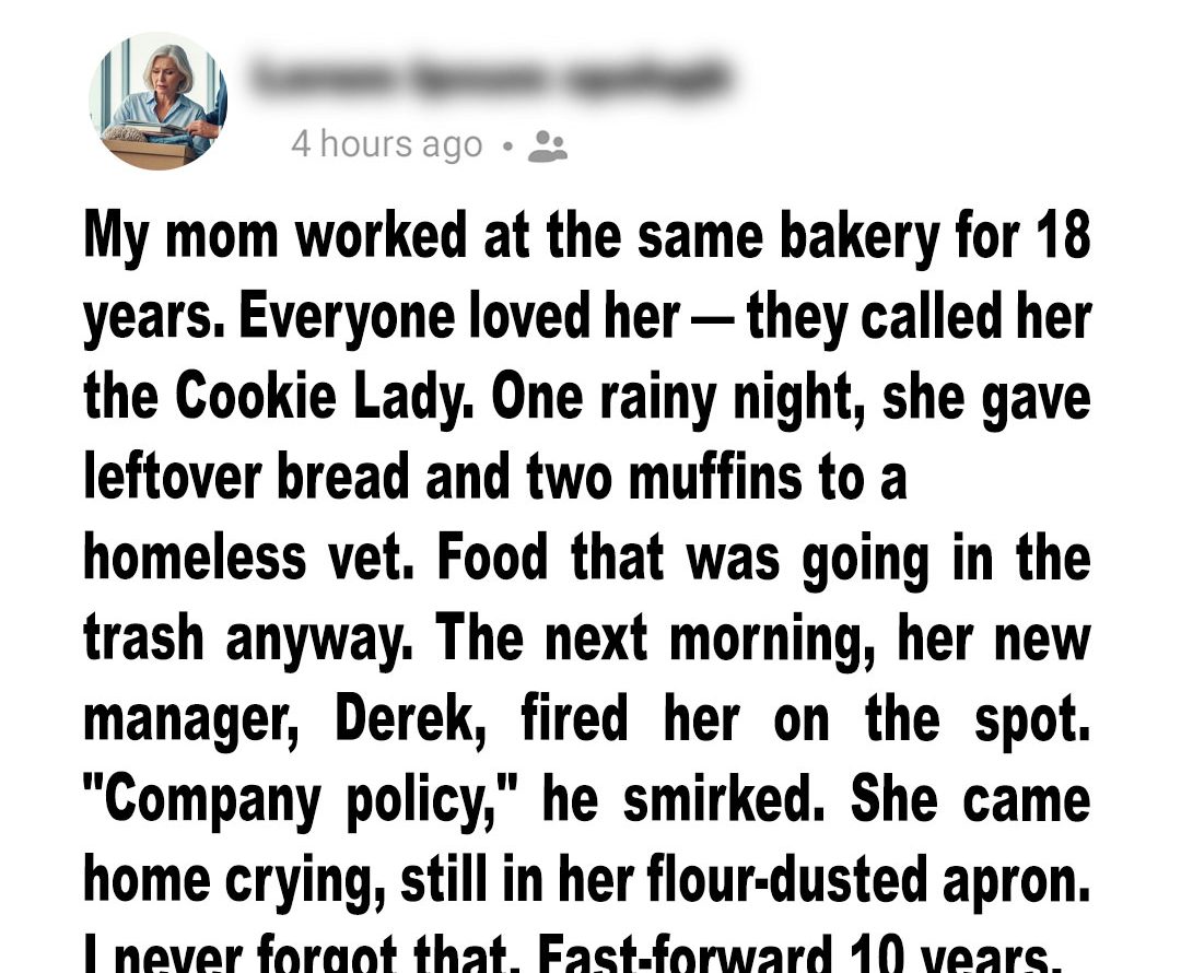When Kevin looks back at his childhood, there’s one memory that never fades — the day his mom Cathy lost her job for doing something kind. She wasn’t famous or rich. She was the Cookie Lady at Beller’s Bakery, known to everyone on Main Street for her warmth, her bright smile, and the way she made every customer feel seen.