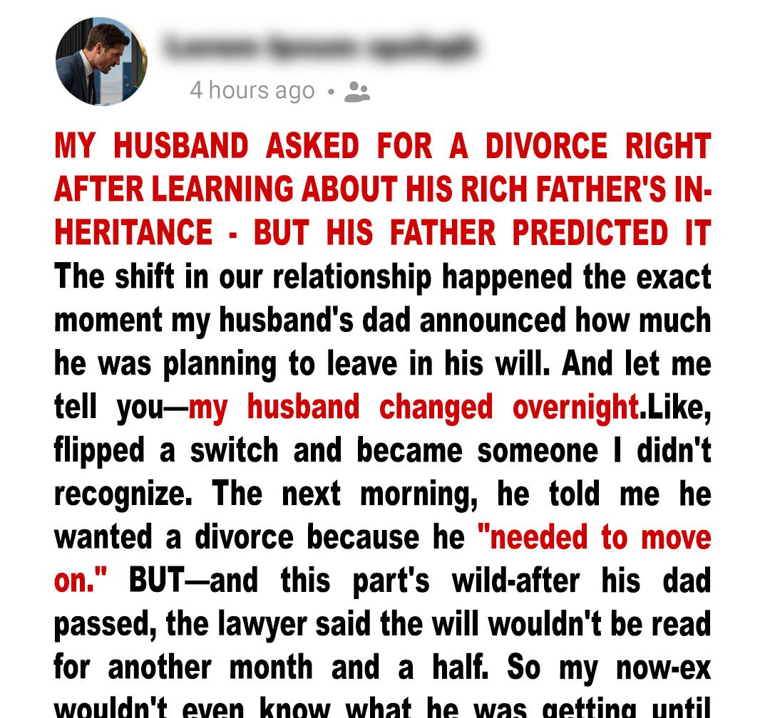 A few weeks after the divorce, the phone rang — an unfamiliar number, and yet something told me to pick it up. It was the lawyer handling Ken’s father’s will. He hesitated — then delivered the shock of my life: