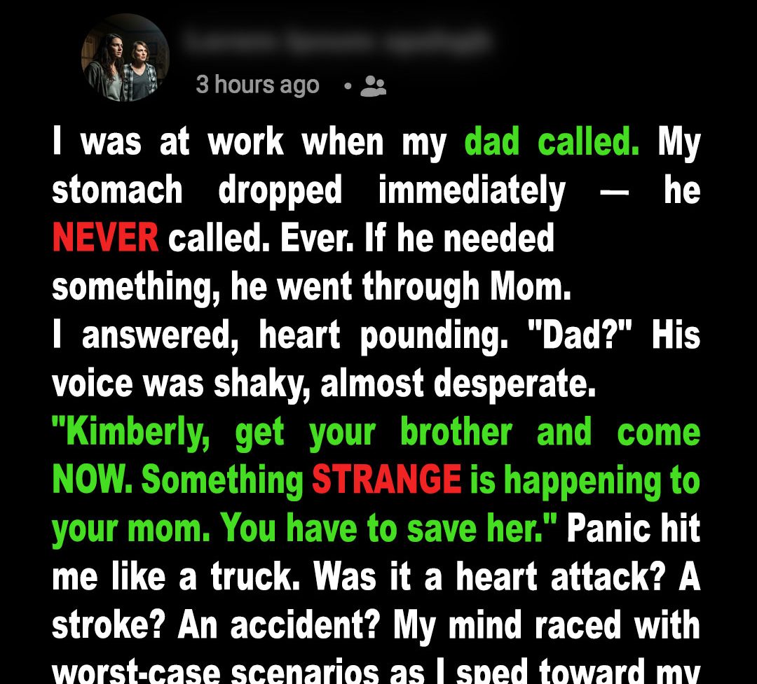 The moment I saw my dad’s name flash across my phone, something didn’t feel right. He never called me directly — Mom did. So when his voice came through trembling with panic, my stomach flipped.