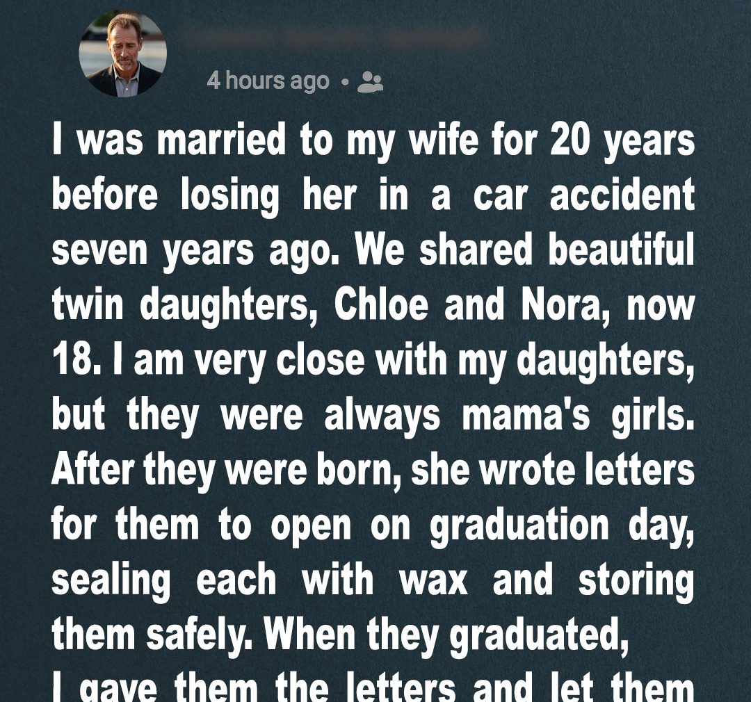 The graduation day of my twin daughters, Chloe and Nora, should have been filled with pride and joy. But when I handed them the letters from their late mother, Laura, the celebration suddenly took a heartbreaking turn.