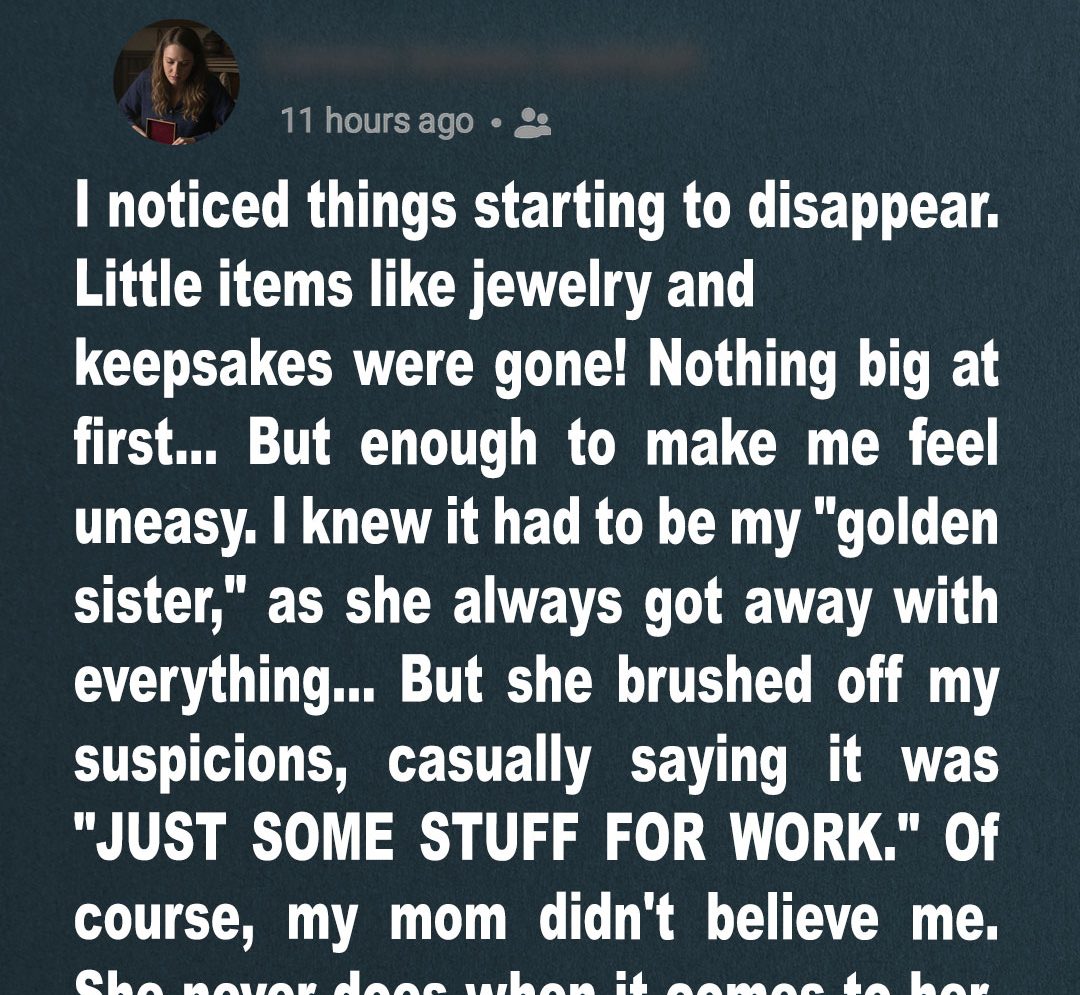 Taking care of my aging mother was already stressful — but when small valuables started disappearing, I knew something was wrong. I lived a busy life balancing long work hours and caring for Mom, while my sister Jane seemed to drop by only occasionally, often calling for favors instead of helping.
