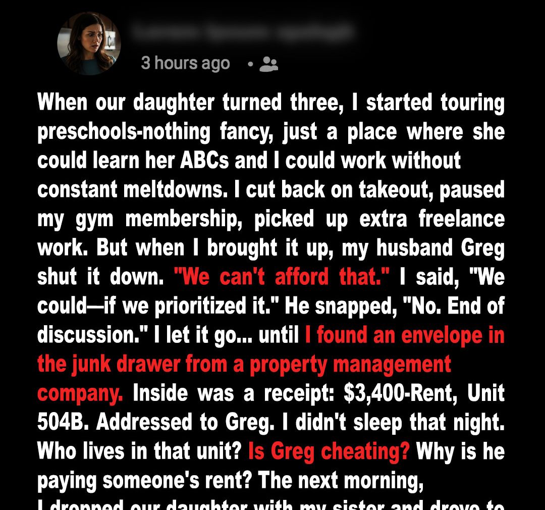 My Husband Said We Couldn’t Afford Preschool — Then I Learned He Was Secretly Paying Someone Else’s Rent