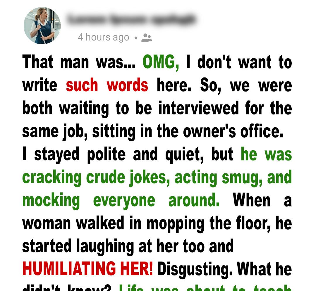 She remained calm, ended the interview immediately, and then turned to me with a warm smile. “You’re hired.” She told me later that the whole setup was intentional — the woman I saw cleaning was an experienced employee helping out while Janitor was running late.