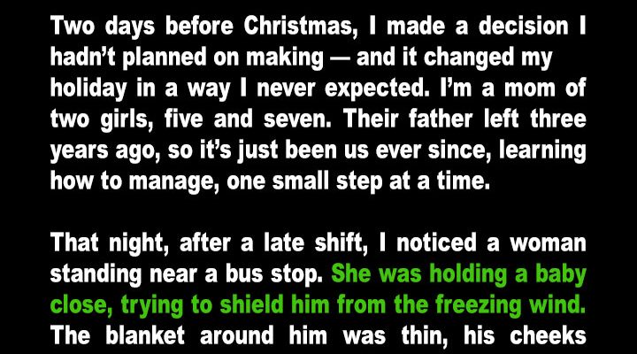Two days before Christmas, I broke every “don’t talk to strangers” rule I’d ever been taught and brought a freezing mother and her baby home with me. I thought I was just giving them a warm place to sleep for the night—I didn’t realize it was going to change our lives.