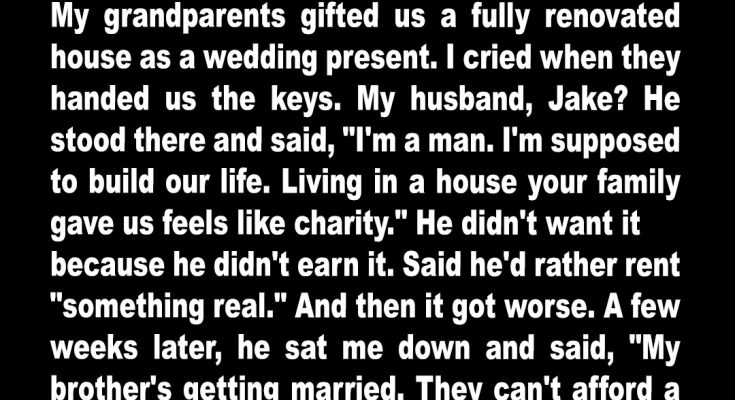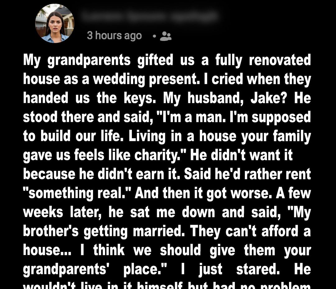 Weeks later, Jake dropped a bomb: his brother and future sister‑in‑law were struggling to find their footing. Jake believed we should give my grandparents’ house to them — because “family matters more than pride.”