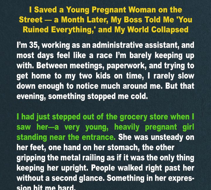 I Saved a Young Pregnant Woman on the Street — a Month Later, My Boss Told Me ‘You Ruined Everything,’ and My World Collapsed
