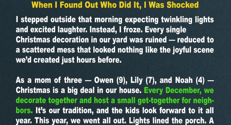 When a mother’s beloved Christmas decorations are destroyed overnight, the wreckage leads to a truth she never expected — and a choice that could heal what bitterness nearly broke. A tender, emotional story about family, forgiveness, and the quiet kind of love that shows up when it matters the most.
