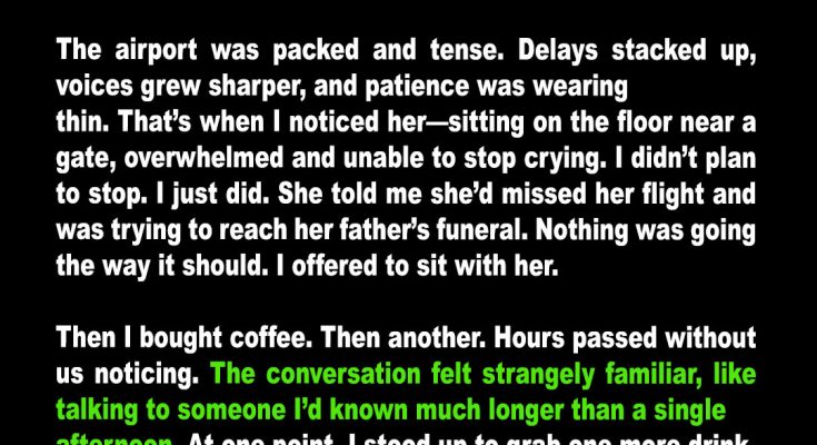 Maybe it was because I’d been exactly where she was once, alone and falling apart in a public place where nobody cared. Maybe it was just instinct. But I found myself crossing the terminal and sitting down on the floor beside her, leaving a respectful distance between us.