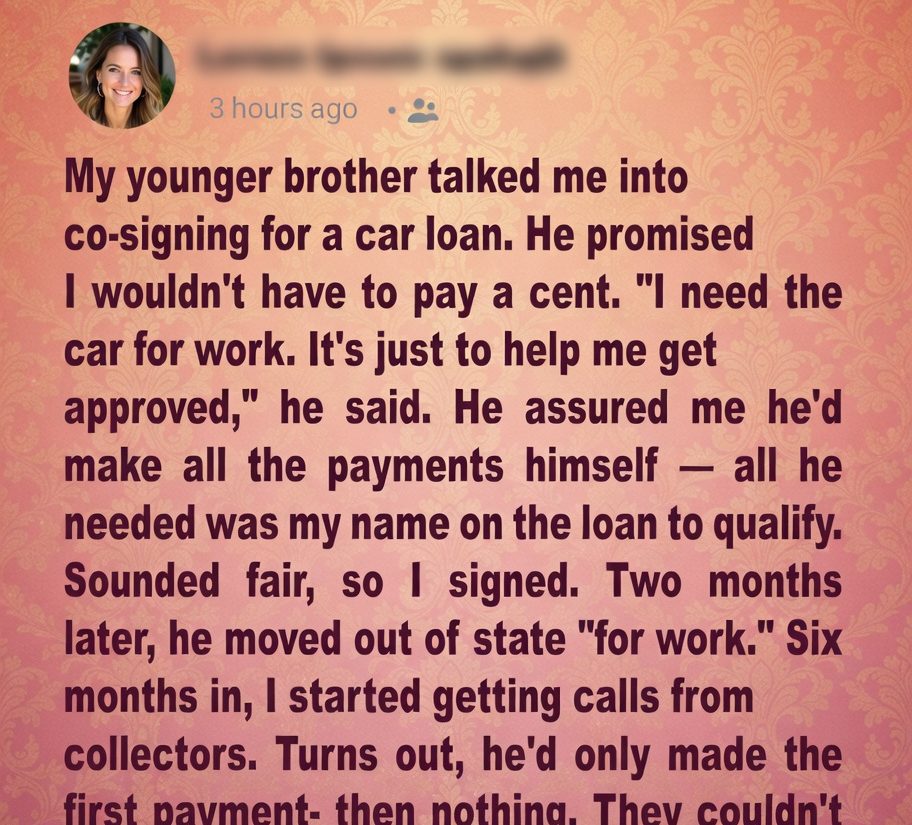 When my younger brother came to me, desperate and emotional, I saw the same kid I’d always protected growing up. He said he just needed a little help getting back on his feet. A car loan. Nothing huge, just something to rebuild his life.