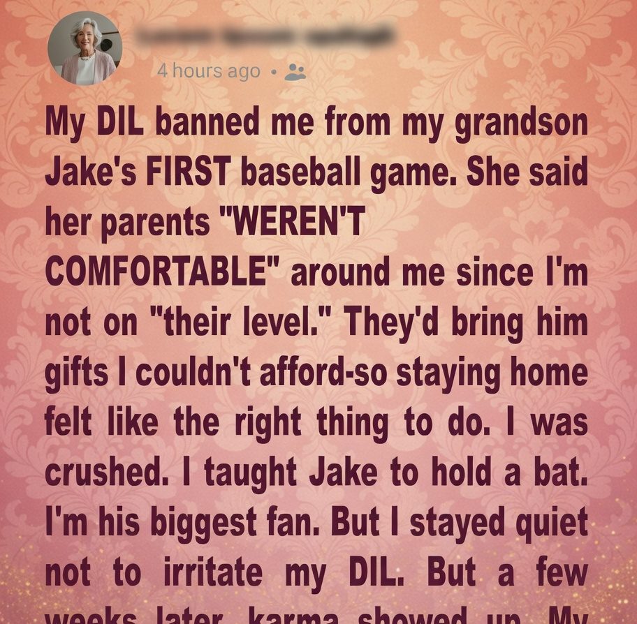 I had been counting the days for my grandson Jake’s first baseball game — unable to wait to cheer him on and celebrate his big moment. But just before game day, a message from my daughter‑in‑law changed everything, and what I learned next shook me to the core.