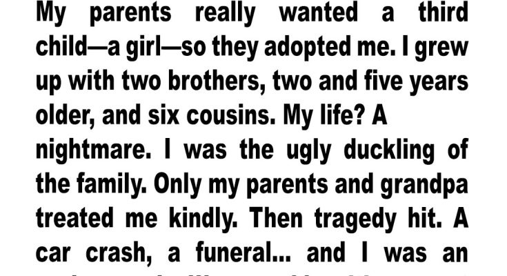 My parents always longed for a third child — specifically a daughter. When I came into their lives through adoption, they welcomed me with open arms. I grew up with two older brothers, two and five years older than me, along with six cousins. From the outside, it looked like a happy childhood, but for me it was anything but that. I felt like the odd one out — the awkward, overlooked kid in a family that never seemed to notice me. Only my parents and grandpa showed real kindness.