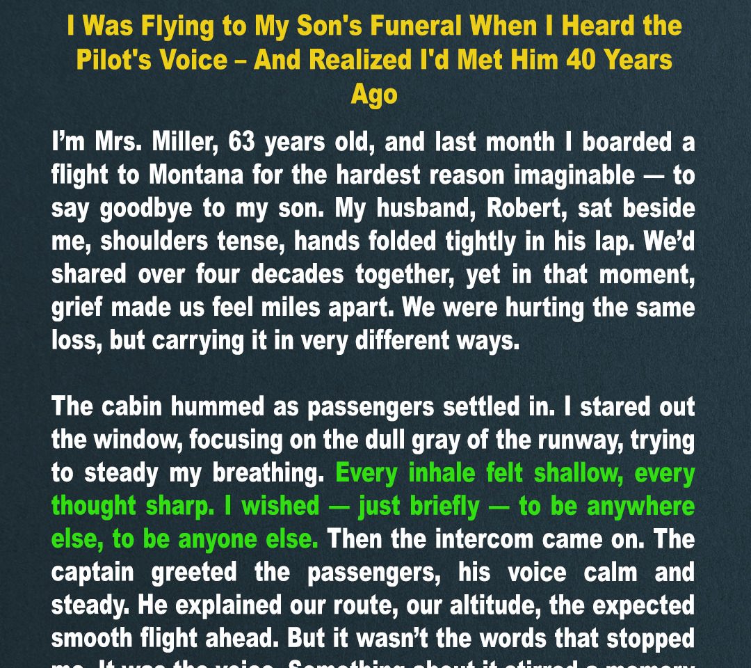 I Was Flying to My Son’s Funeral When I Heard the Pilot’s Voice – And Realized I’d Met Him 40 Years Ago