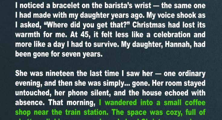 For seven years, I lived with silence — no answers, no clues, just the ache of not knowing what had happened to my daughter. Then, in a crowded coffee shop far from home, I saw a bracelet that stopped me cold.