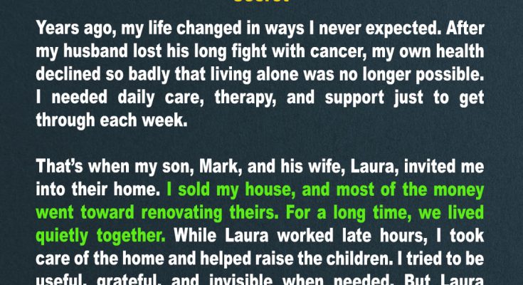 I couldn’t speak. My throat closed up. I whispered, “Laura, this is my home, too. I gave you everything from the sale of my house.”