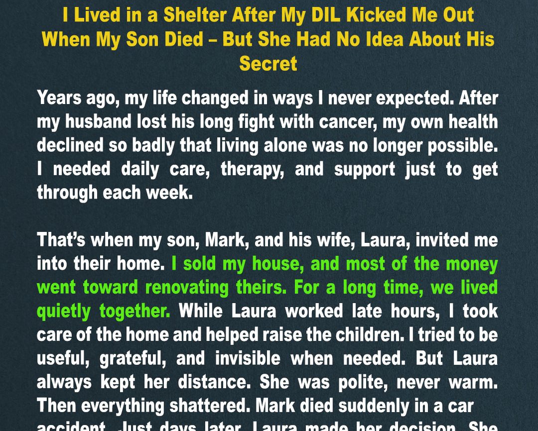 I thought I’d spend my golden years surrounded by family, not sleeping on a cot in a homeless shelter. But grief has a way of exposing truths—and secrets—I never saw coming.