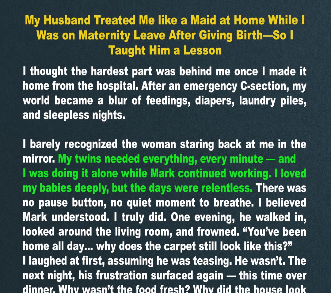 My Husband Treated Me like a Maid at Home While I Was on Maternity Leave After Giving Birth—So I Taught Him a Lesson