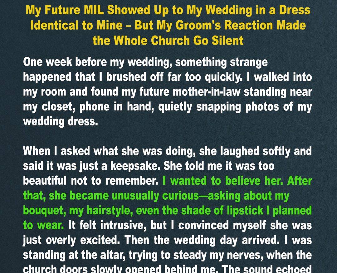 My Future MIL Showed Up to My Wedding in a Dress Identical to Mine – But My Groom’s Reaction Made the Whole Church Go Silent
