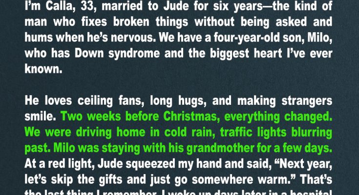 I called Jude’s insurance company, my voice shaking. I explained the accident to a kind woman. I explained Milo’s special needs and that my husband was unconscious, and that I was desperately trying to understand what help still existed while everything felt unstable.