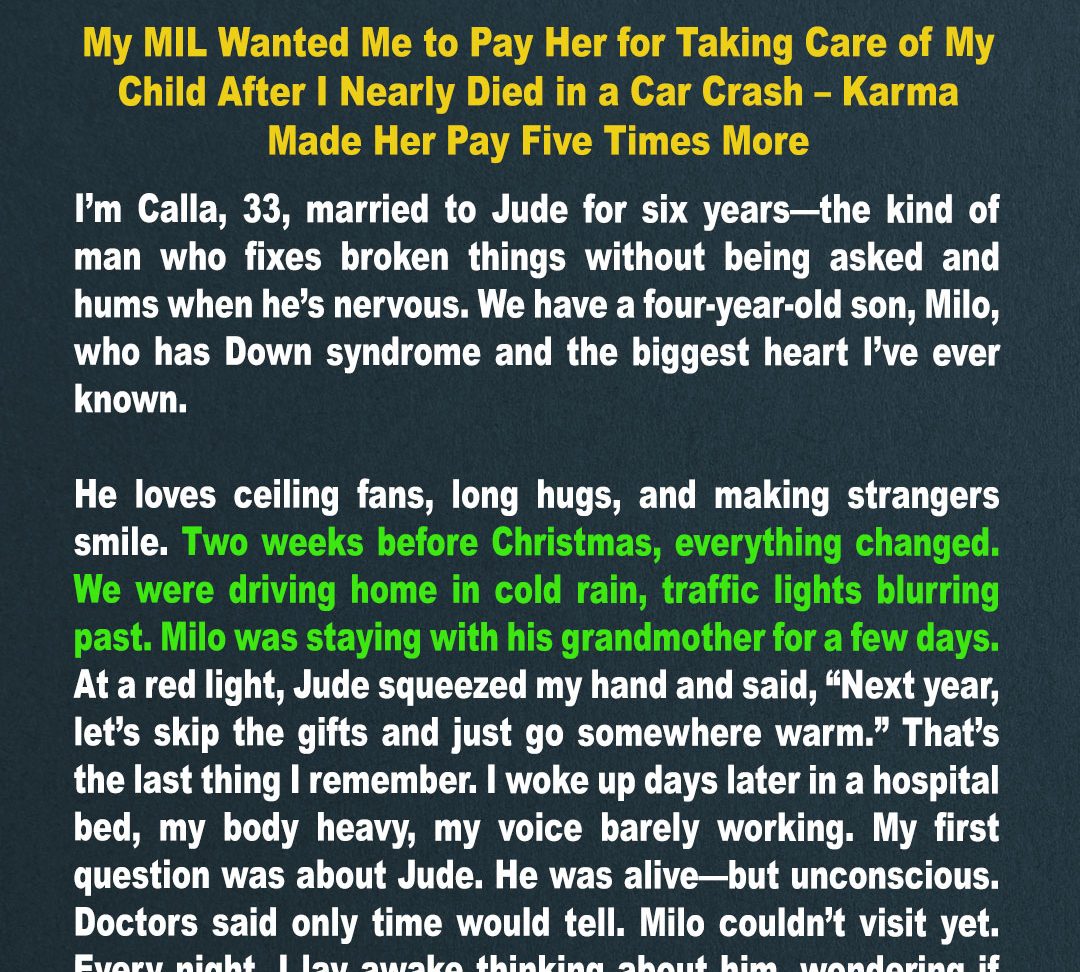 I had barely survived a car crash and couldn’t walk without help when my mother‑in‑law came to see me in the hospital, not to ask how I was, but to hand me a bill.
