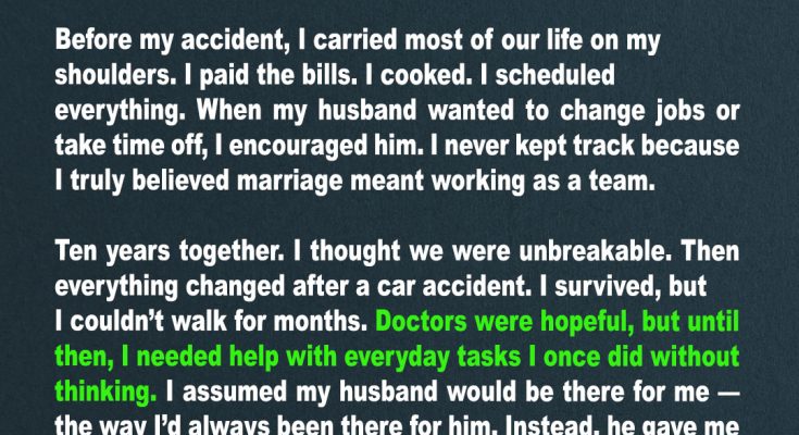 After a car accident left me in a wheelchair for months, I thought the hardest part would be learning how to walk again. I was wrong — the real test was finding out what my husband thought my care was worth.