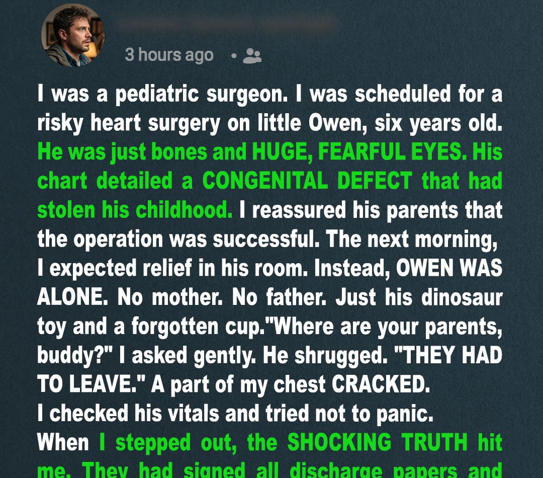 Owen’s parents had signed every discharge form, collected every instruction sheet, and then walked out of the hospital and vanished into thin air.