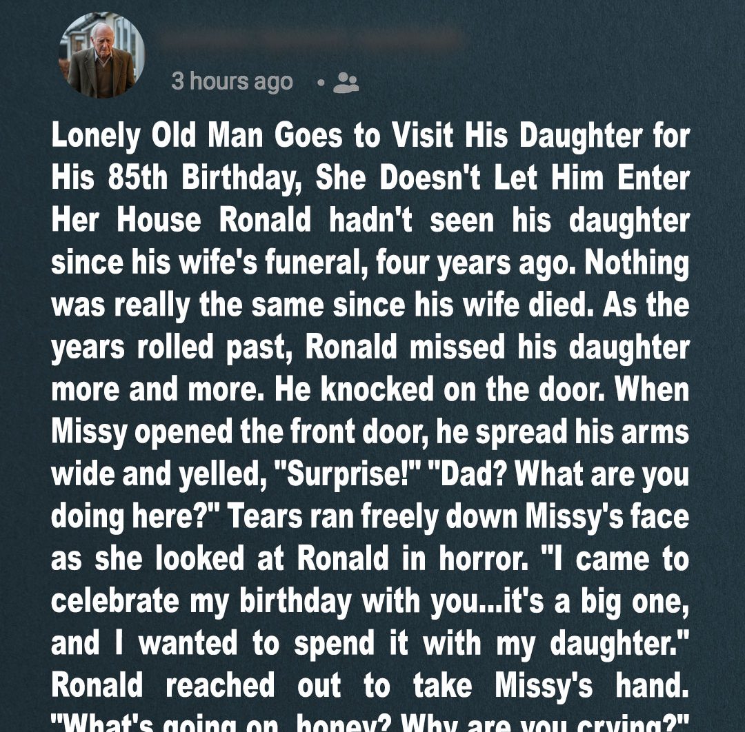 Ronald never imagined that reaching 85 would feel so quiet. When his wife died four years earlier, the silence settled into his home and stayed there. All Ronald wanted now was to see his daughter, even if only for a few hours. What he did not expect was that showing up at her door would leave him standing outside, heartbroken and afraid.