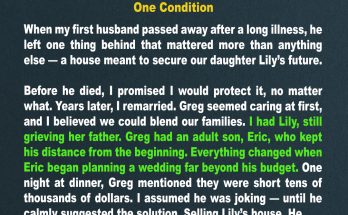 When my second husband demanded I sell the home my late husband left for our daughter to fund his son’s extravagant wedding, I agreed on one condition. What happened next …