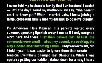 For years, I let my in-laws believe I didn’t understand Spanish. I heard every comment about my cooking, my body, and my parenting. I stayed quiet. Then last Christmas, I …