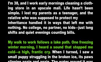 I was already late for another thankless shift when a scream tore across the frozen lake. A puppy was drowning under cracked ice — and I wasn’t about to let …