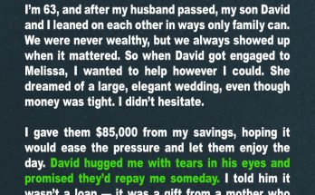 I gave my son $85,000 of my retirement savings so he could have the wedding of his dreams. On the day of the ceremony, I arrived early and dressed in …