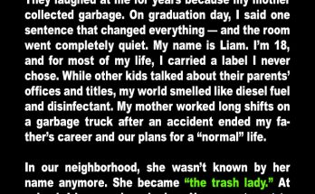 My classmates made fun of me because I’m the son of a garbage collector—but at graduation, I only said one sentence, and the whole gym went dead silent and started …